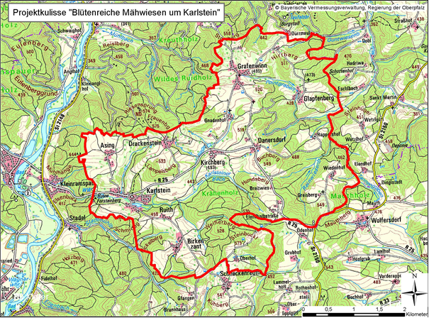 Ein Ziel des Projekts war es, entsprechende Wiesen im Projektgebiet rund um Karlstein zu erfassen und zu dokumentieren, wo die Mageren Flachland-Mähwiesen als Lebensraumtyp vorkommen.