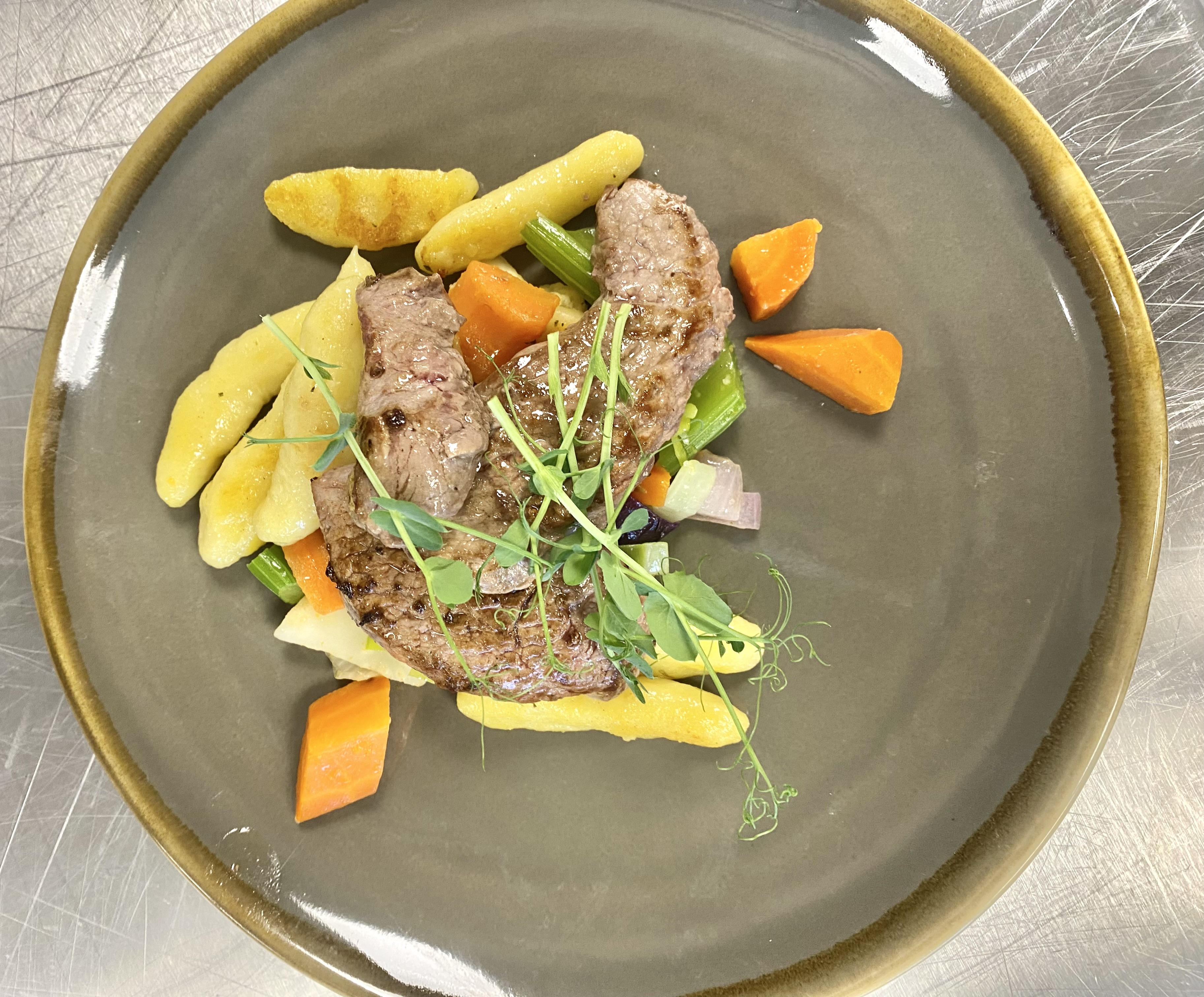 Inhaber und Küchenchef Robert Tischler hatte eigens für die Klasse feinstes Wildschweinfleisch aus heimischer Jagd vorbereitet. Gemeinsam wurde das Fleisch – passend zur Herbstzeit – mit selbstgemachten Fingernudeln, saisonalem Gemüse und Wildsauce zubereitet. Zur Nachspeise gab es selbstgemachte Panna Cotta. Doch nicht nur die handwerklichen Fertigkeiten standen im Fokus: Die Jugendlichen lernten auch, warum es sich lohnt, auf regionale Produkte zu setzen. Die Lebensmittel bezieht der Gasthof zum Posthalter ausschließlich aus der Region. Die kurzen Transportwege sorgen nicht nur für Frische, sondern unterstützen auch die heimische Landwirtschaft und tragen zum Klimaschutz bei. Parallel dazu zeigte Bettina Tischler der zweiten Gruppe, wie ein Alltag im Service und an der Rezeption des Gästehauses aussieht. Von der Reservierung über die Gästebetreuung bis hin zum Personalmanagement bekamen die Jugendlichen einen spannenden Einblick hinter die Kulissen des familiengeführten Gastronomiebetriebes.