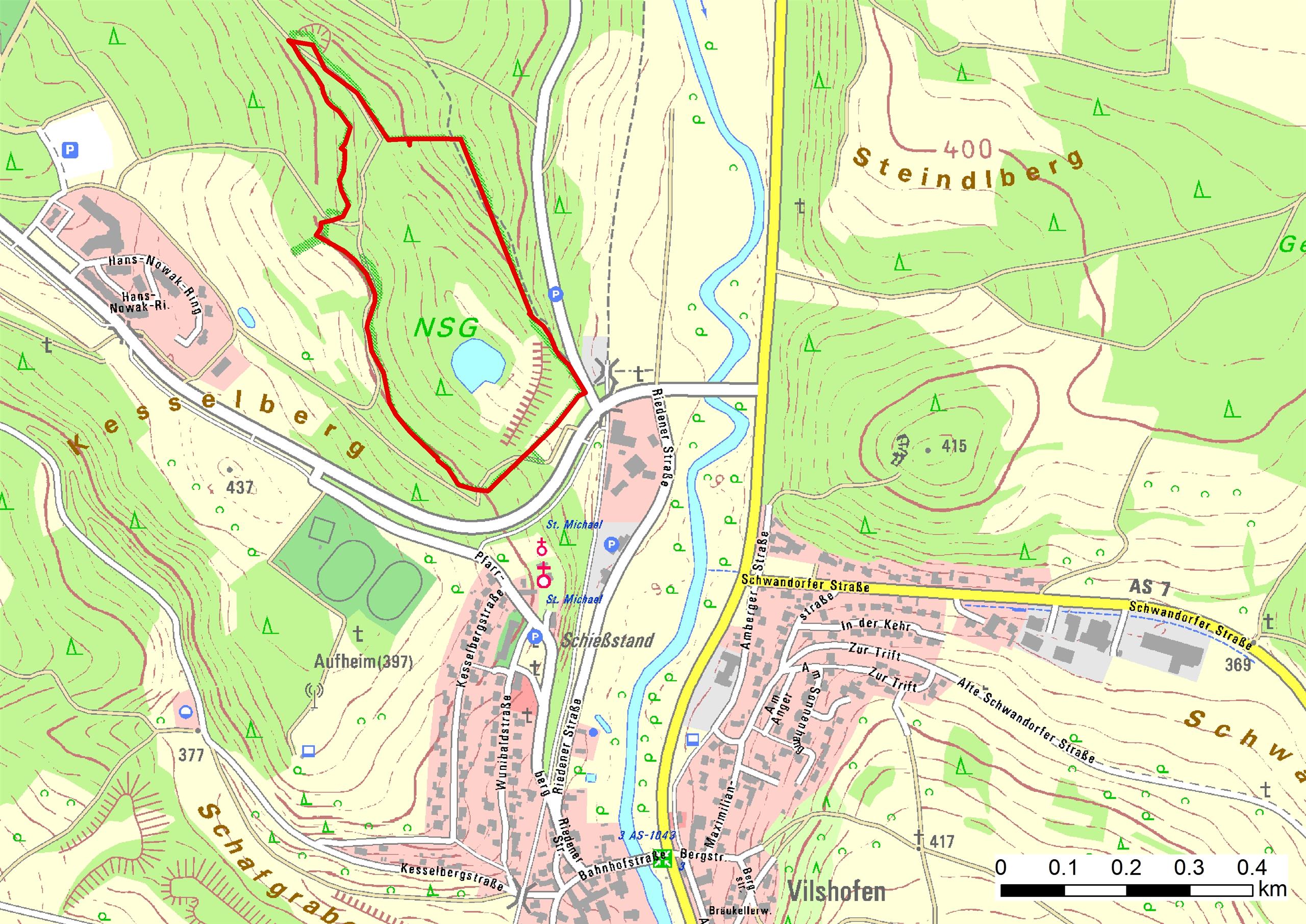 Das Naturschutzgebiet befindet sich im Naturraum Mittlere Frankenalb in einem Seitental der Vils. Entstanden aus dem ehemaligen Klärteich des Steinbruchs Vilshofen, der Kalk an die damalige Maxhütte in Sulzbach-Rosenberg lieferte, ist das ca. 15 ha große Gelände heute weitgehend verlandet. Die enge Verzahnung von Laubmischwäldern und Wildgrasfluren mit den Feuchtgebietsstrukturen bietet vielen besonderen Pflanzen- und Tierarten eine Heimat. Neben Eichen und Hainbuchen prägen wertvolle Pflanzengesellschaften wie thermophile Kalkmagerrasen, Saum- und Felsspaltengesellschaften das Gebiet.