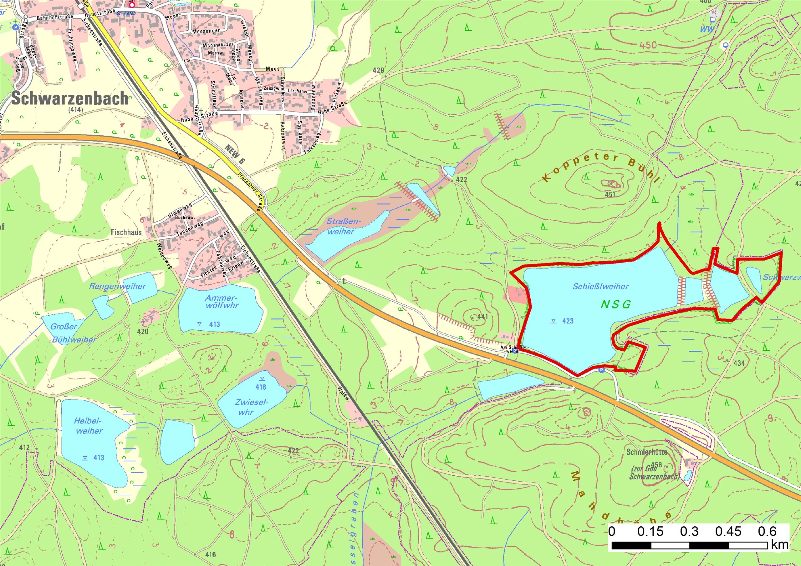 Begehbarkeit: Südlich und östlich des Schießlweiher befinden sich Wege entlang des Sees, von denen der See gut eingesehen werden kann. Bitte bleiben Sie zum Schutz der Verlandungszone auf dem Weg.