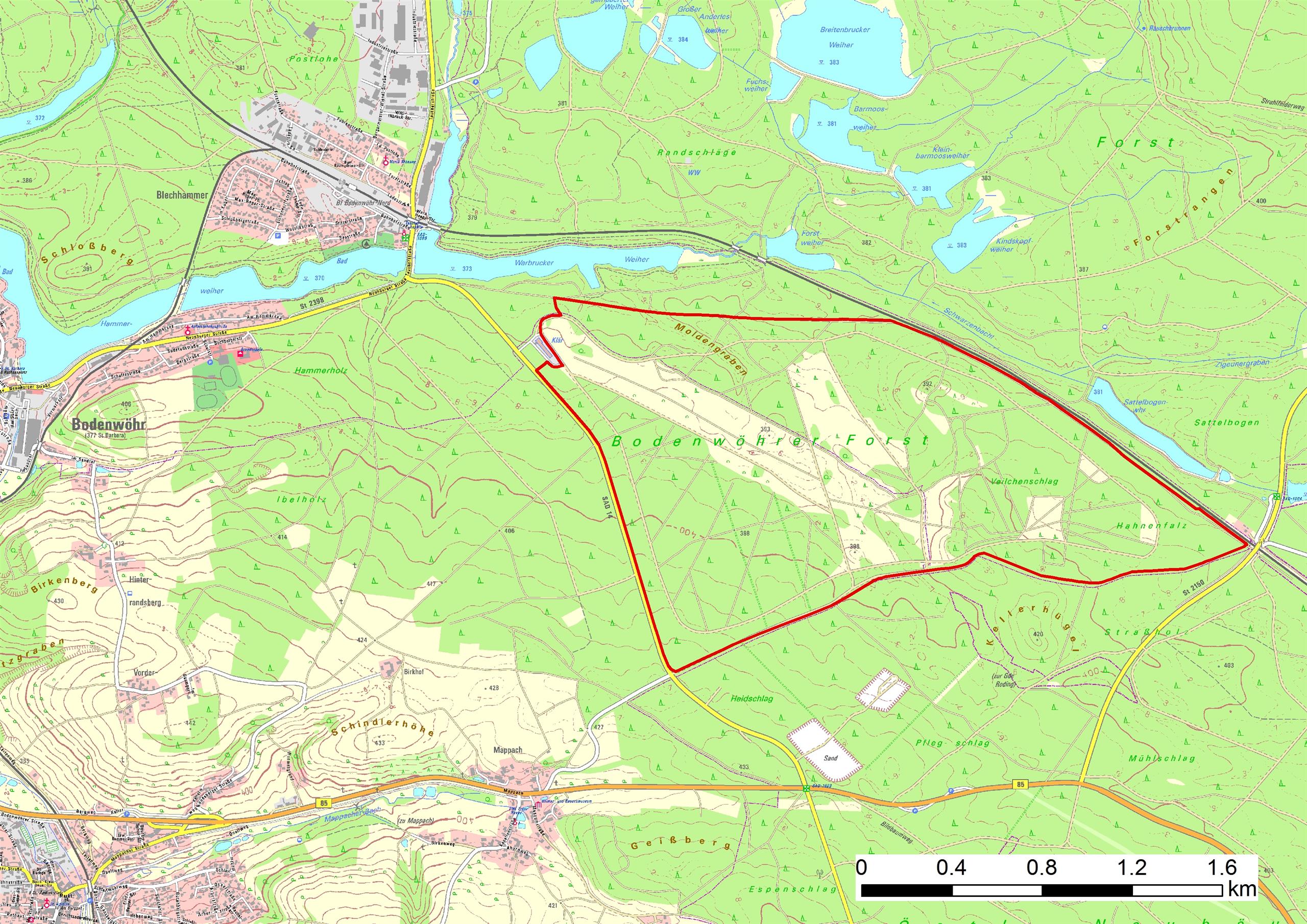 Auf dem Gelände des ca. 3 km östlich von Bodenwöhr gelegenen ehemaligen Truppenübungsplatzes konnte sich eine Wald- und Heidelandschaft entwickeln, die zu einem der schutzwürdigsten Sandlebensräume im Landkreis Schwandorf zählt. Diese Landschaft beherbergt ein einzigartiges Mosaik an wärmeliebenden Sandkiefernwäldern, trockenen Saumstrukturen, Zwergstrauchheiden, Sandmagerrasen und wechselfeuchten Mulden.